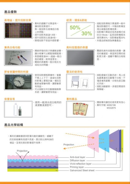 – 2in1的設計,會議室只需採購一片投影輝板即可